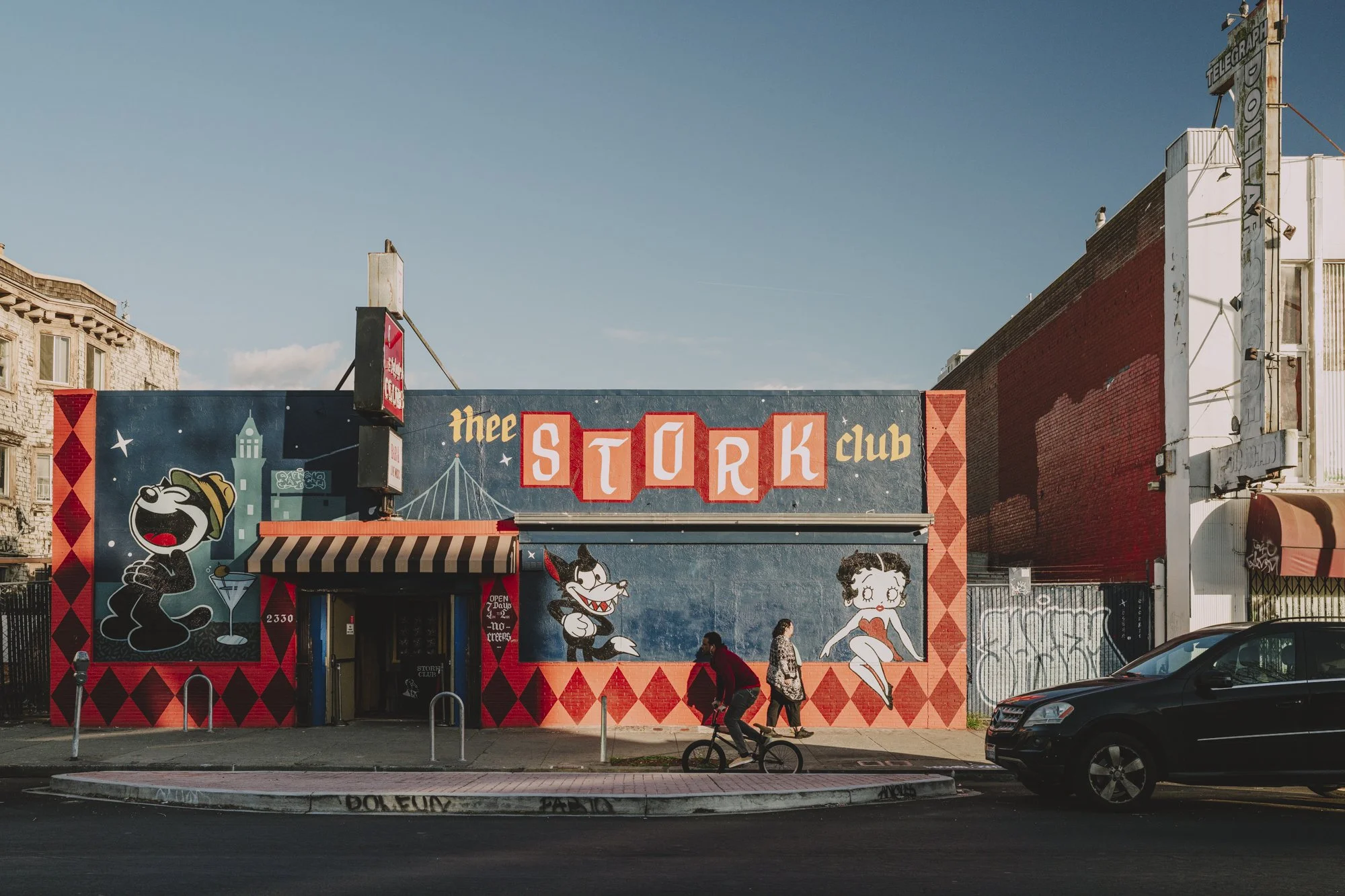 Because I had an established photographic practice centered around place before I joined this class at in UC Berkeley's Geography deparment, and because I was accustomed to my photographs generally being accompaniment to music or interruptions to text, I found it difficult to know what I wanted the San Pablo photos (alone) to say. I figured what I had to say about San Pablo – a bad poem built from a jumble of businesses I used to frequent, bygone music venues, bus stops and BART sounds, stucco bungalows, vehicle exhaust, vine, brick, redlining, and liquefaction risk – was less interesting than what San Pablo (and people sheltering, laboring, shopping, stopping, going there) still had to say to me. So, I just asked a lot of questions. This is really, if I’m honest, what I think a photographer’s job is, not delivering light. Our job is to ask questions and the viewer’s job is to ask if we’re asking the right ones: to be suspicious, to wonder what’s behind that pillar or what the subject was doing just before or after they came into contact with the camera.